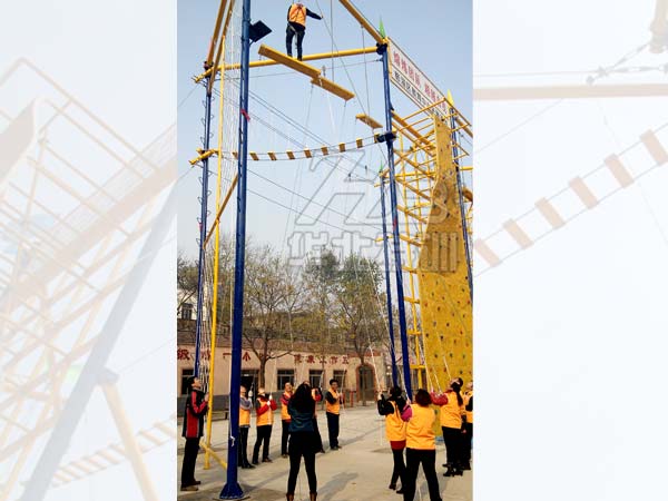 規(guī)格:占地42米長×6米寬,主體長41.5米×寬6米×高8米。 包含項(xiàng)目:獨(dú)木橋、翹板橋、橫渡天梯、吊索橋、斷橋、攜手并進(jìn)、相互依存、禮讓通行、網(wǎng)墻(2…